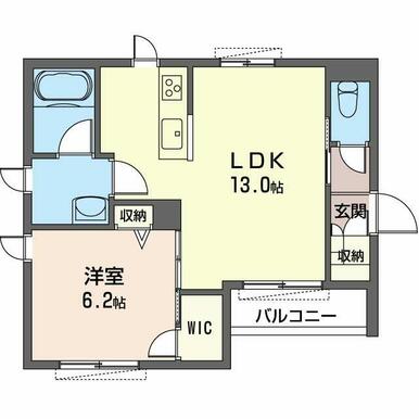 | 間取り | 1LDK(LDK13.0帖 洋室6.2帖) | 主要採光面 | 南東 |